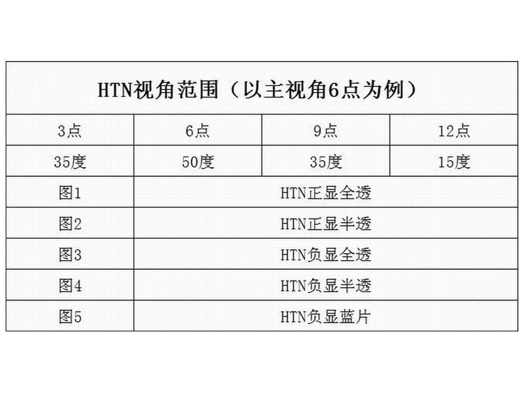 8;特性:HTN顯示比TN顯示視角范圍要寬一些,可調(diào)電壓范圍也比TN顯示寬,價(jià)格也比TN顯示略高。適用于要求稍高TN顯示無(wú)法滿足,但是價(jià)格又不能比TN顯示相差太大的電子產(chǎn)品上。HTN正顯為白底黑字,字體帶少少泛白,HTN負(fù)顯為藍(lán)底白字,藍(lán)色帶點(diǎn)紫紅色。